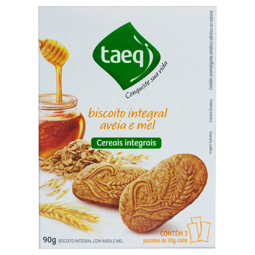 Biscoito Integral Aveia e Mel Taeq Caixa 90g 3 Unidades