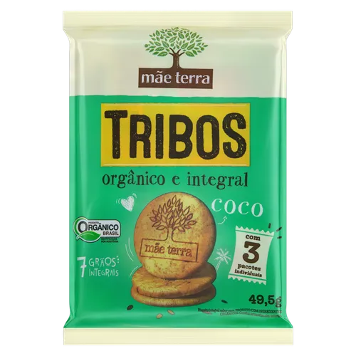 Pack Biscoito Integral Orgânico Coco Mãe Terra Tribos Pacote 49,5g 3 Unidades