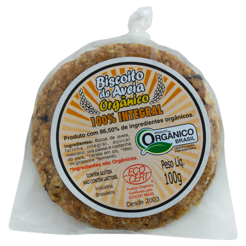 Biscoito Integral Orgânico Aveia Pão do Céu Pacote 100g