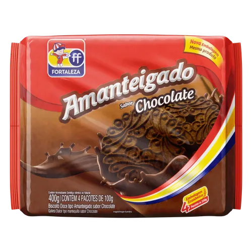 Biscoito Amanteigado Chocolate Fortaleza Pacote 400g 4 Unidades