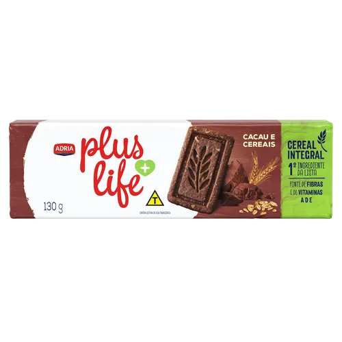 Biscoito Integral Cacau e Cereais Adria Plus Life Pacote 130g