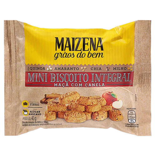 Mini Biscoito Integral Maçã Com Canela Maizena Grãos do Bem Pacote 40g