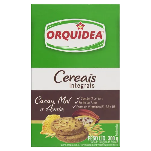 Biscoito Integral Cacau, Mel e Aveia Orquídea Caixa 300g 10 Unidades