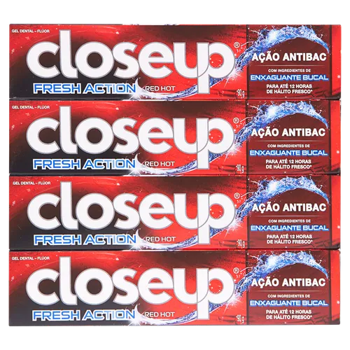 Pack Gel Dental com Flúor Fresh Action Red Hot Closeup Caixa 90g Cada Leve 4 Pague 3 Unidades R$ 210,00